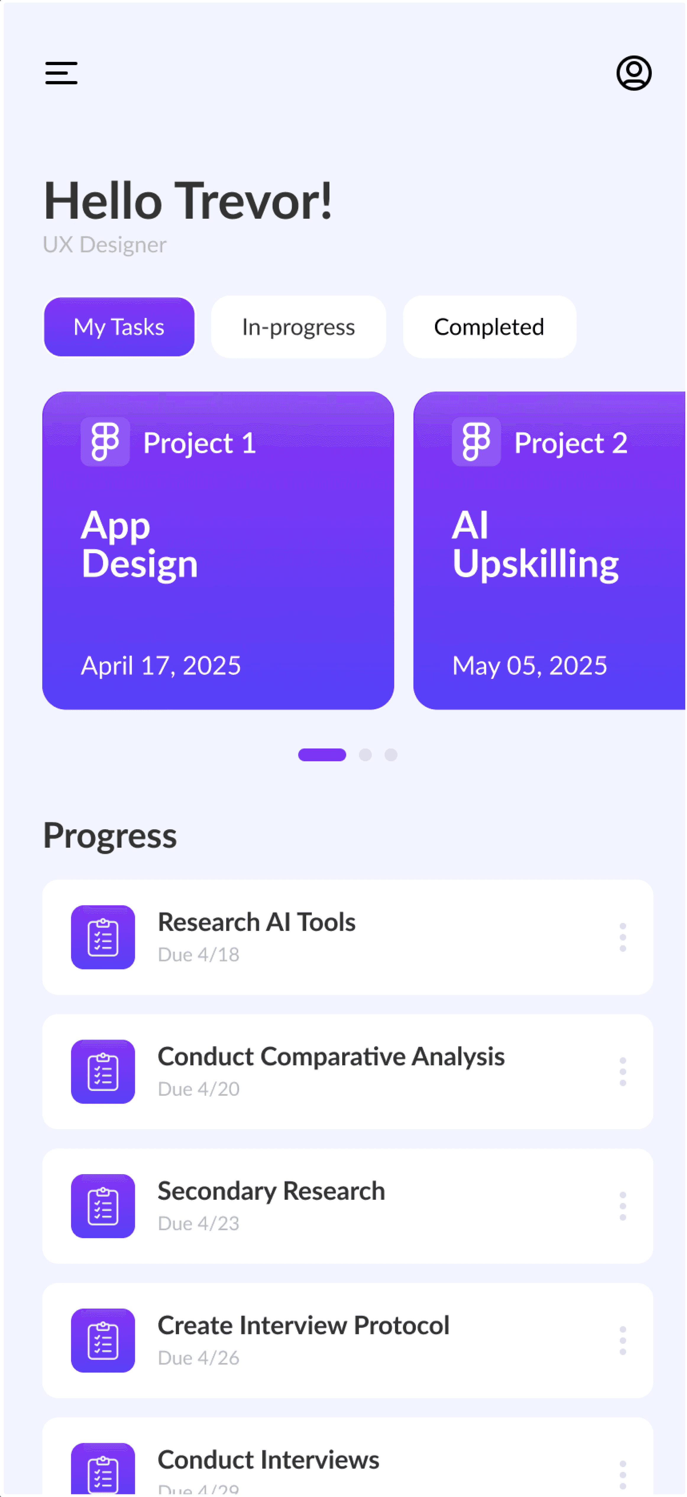 As an exploratory project, our direction was always changing. Our team really struggled with scope. We had started with the extremely broad subjects of both upskilling and AI. Everyone learns in life, what user group should we focus on? There are so many ways to utilize AI, what ways are we going to use it? These questions kept our scope incredibly big, and therefore there was a lot to research. As we went on, the team had to come together to make decisions to scope down. We realized that by trying to design for everyone, we were in danger of designing for no one. Ultimately, we learned that defining what the project wasn't was just as important as defining what it was, allowing us to transition from continued blind research to a focused direction.