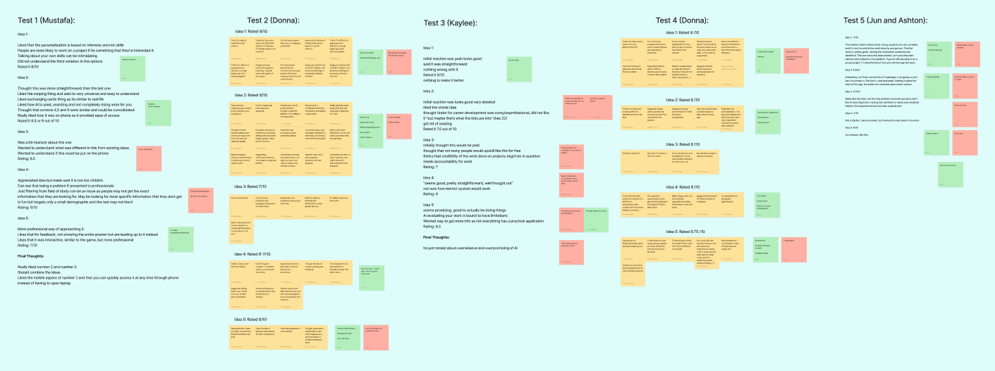 The team conducted 12 interviews in total to understand the role and perception of AI and key pain points in upskilling. I interviewed an upperclassman and a experienced professional.