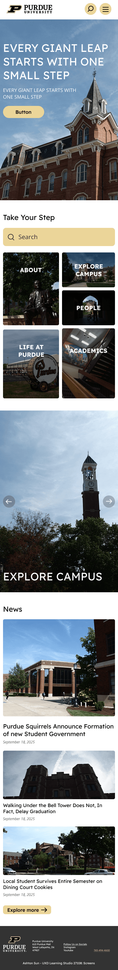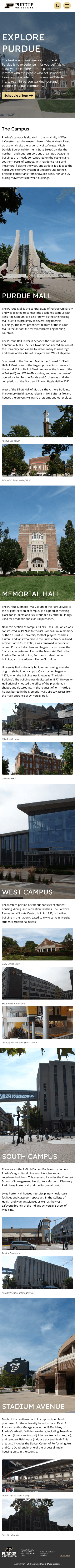 Clarified Naming: "Campuses" was renamed to the more action-oriented "Explore Purdue" to better reflect its content.